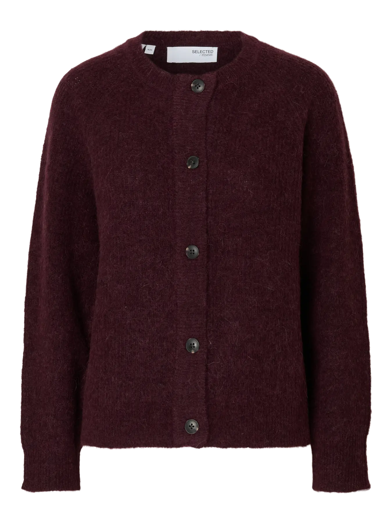 Strikkecardigan fra Selected Femme i en nydelig ull- og alpakkablanding. Cardiganen har rund hals, med ribbestrikk nederst på erme og nederst på genseren, samt lukkes med knapper.