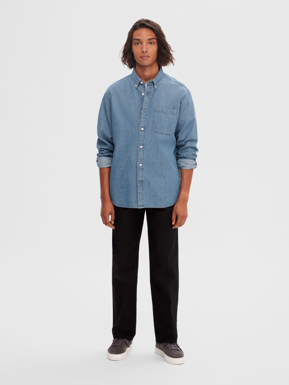 A timeless and comfortable choice for the everyday wardrobe. - Detail Type : Denim shirt - Neck : Shirt Collar - Sleeve : Long Sleeves (L/S) - Cuffs : Buttoned cuffs - Closing : Button fastening - Length/Size : Regular - Lining : Unlined - Extra details : Curved hem - Fit : Regular Fit
