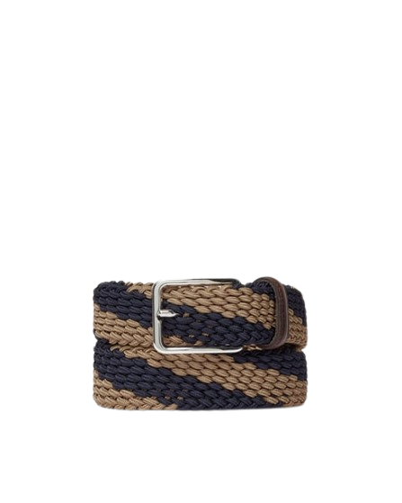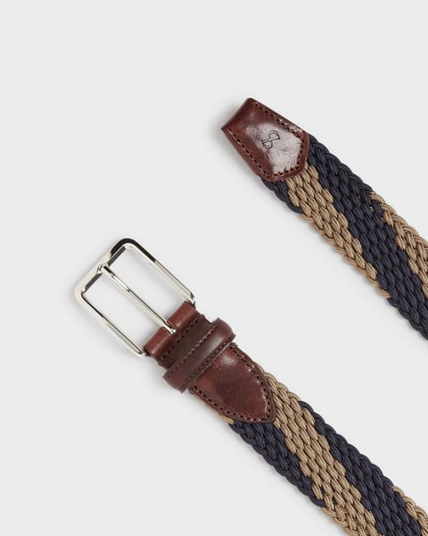 Textile belt Georgtown by Saddler. Elastic viscose belt, woven in a lovely and distinctive pattern with vegetable tanned leather details. Georgtown is the perfect belt for a pair of jeans or chinos, to add a casual touch to a dressed-up look.
