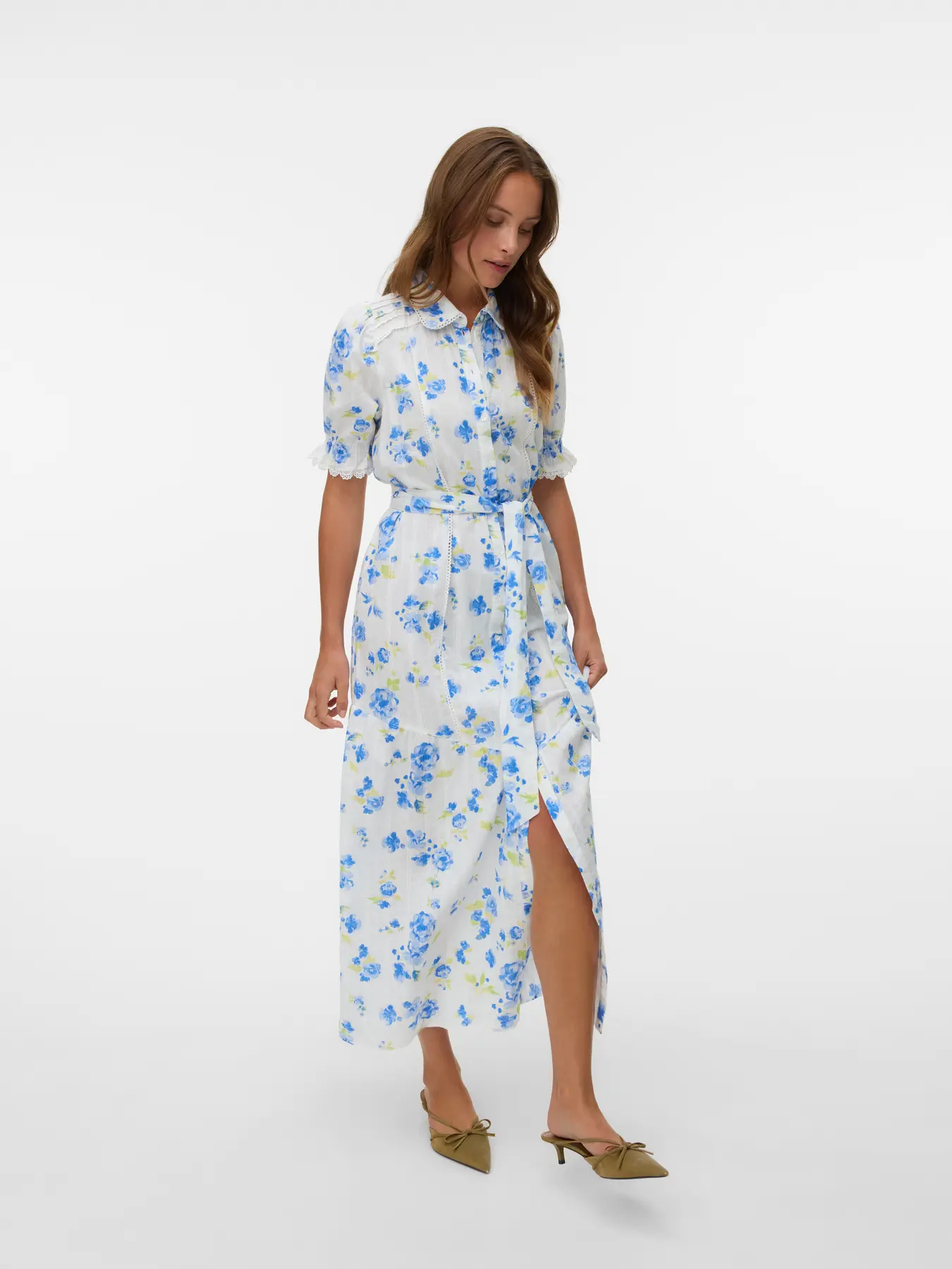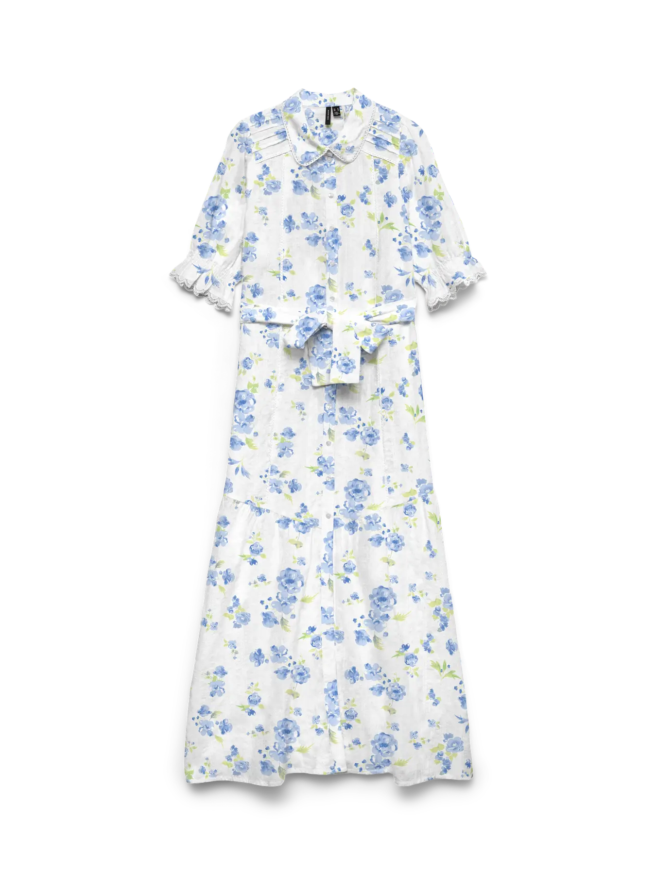Med sin skjortekrage, myke elastiske mansjetter og knappelukking i front, føles kjolen både lett og gjennomført. Den er laget i 100 % vevd bomull med luftig fall, og passer perfekt til bryllup, festivaler, sommerfester – eller en helt vanlig solfylt dag med sandaler og solbriller.