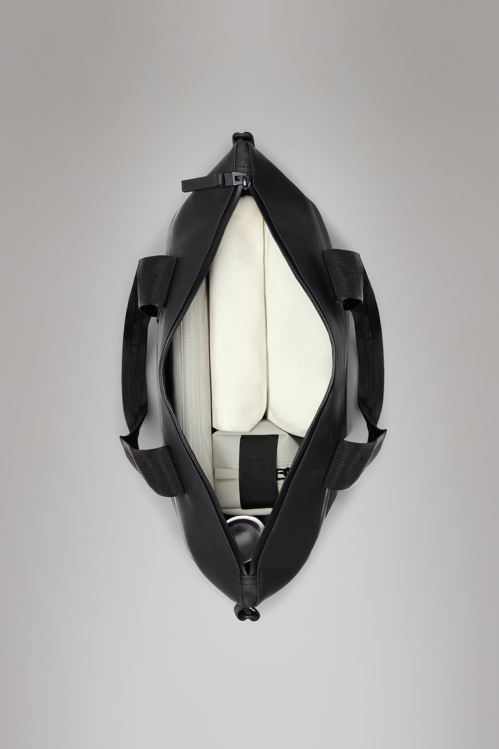Stilren og funksjonell veske laget i Rains’ vanntette signaturmateriale. Utstyrt med langt bærehåndtak, avtakbar skulderrem og et romslig hovedrom – perfekt til jobb, skole eller hverdagsbruk.