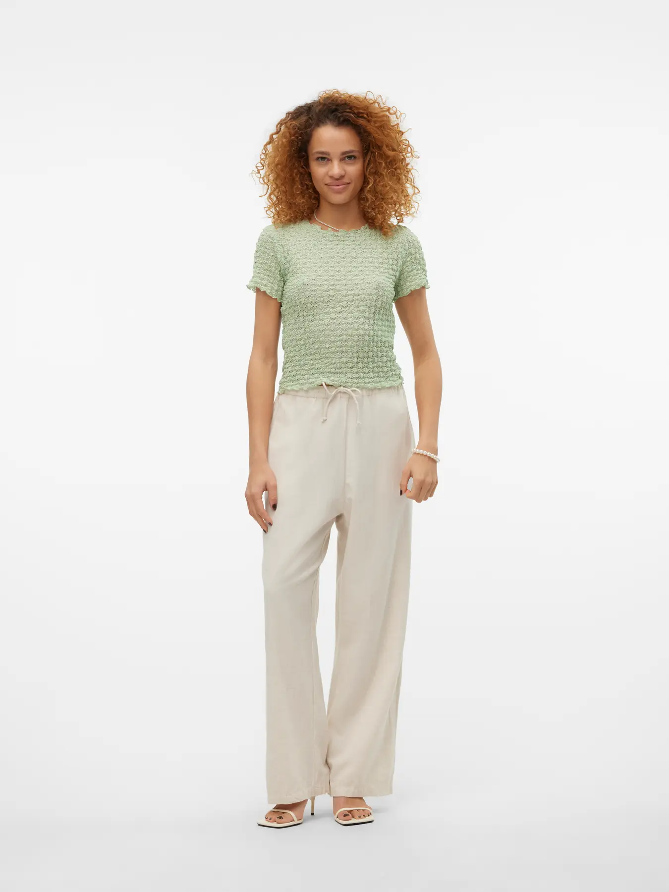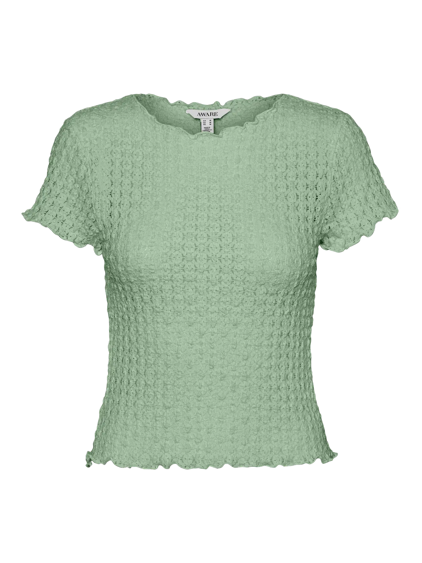 Looking for your new everyday favourite top? We got an idea. This top will easily become your new go-to on days where you are not in the mood for something wild, but still want to look on-trend. Add some jewellery for that extra bit of sparkle or keep it simple with a light jacket. AWARE by VERO MODA is our unique product line of better quality go-to pieces, designed with necessary preferred, certified, and branded fibres that reduce the amount of natural resources used during production. - Product Type : Top - Neck : O-Neck - Sleeve : Short Sleeves (S/S) - Length/Size : Short - Fit : Regular Fit