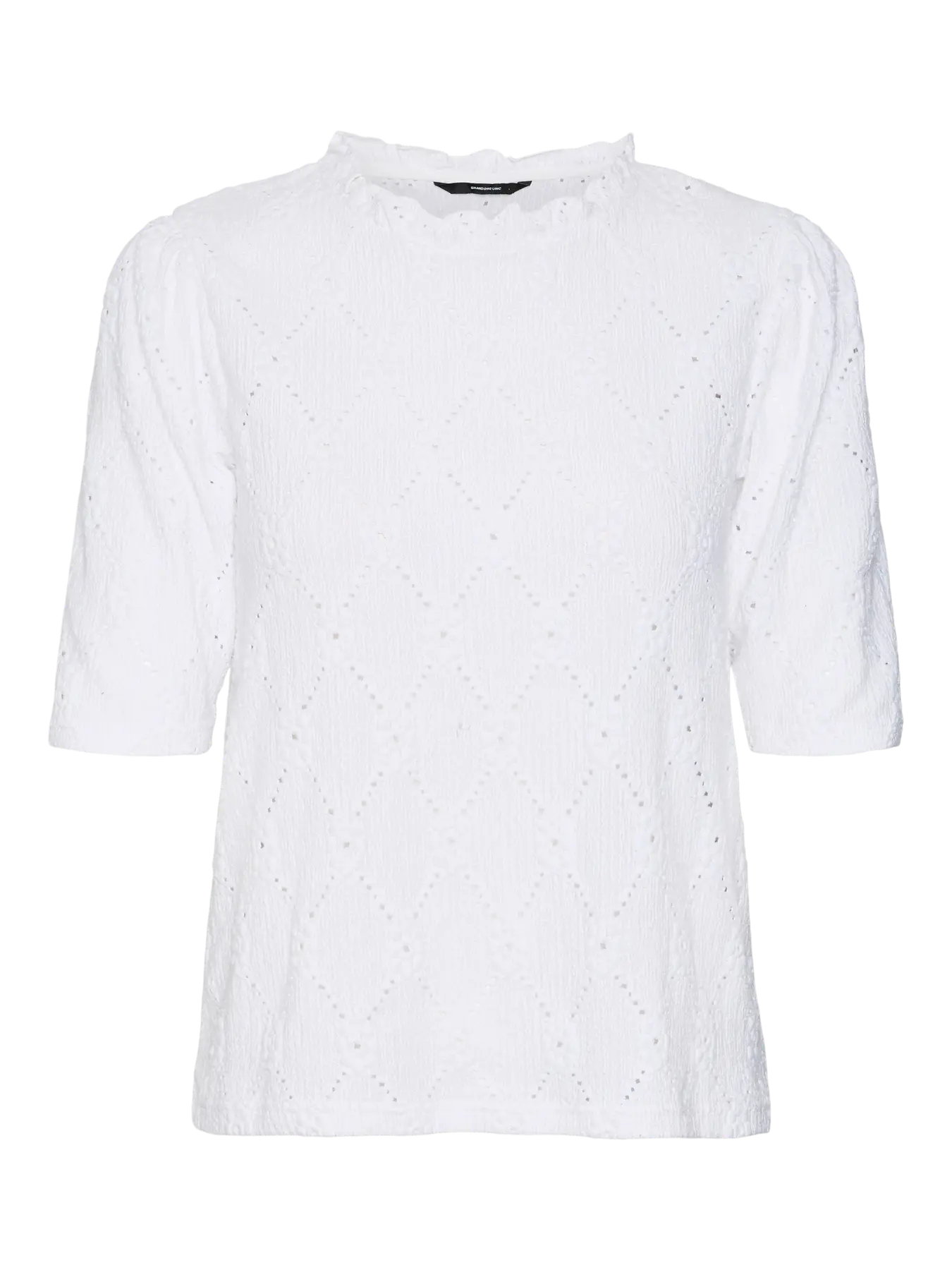 Denne rundhalsede toppen kombinerer romantisk eleganse med moderne komfort. De korte puffermene og dekorative volangene gir plagget et feminint uttrykk, mens den myke single jersey-kvaliteten gjør det behagelig å bruke – hele dagen.