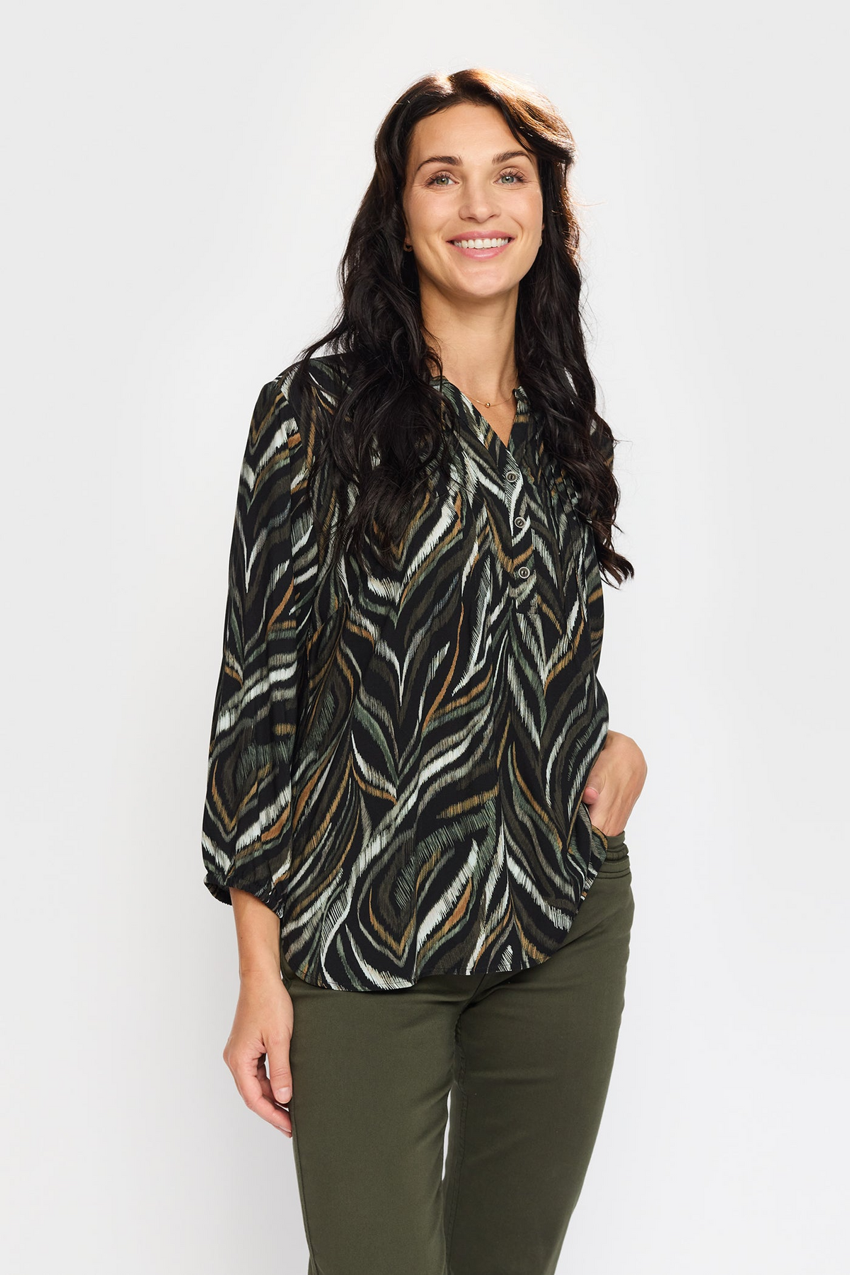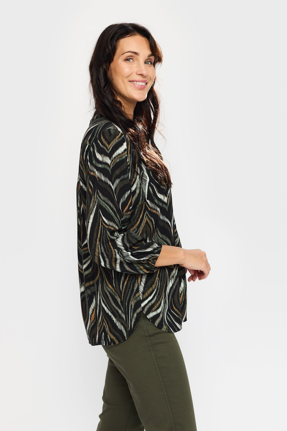 Den klassiske knappelukkingen gir et sofistikert uttrykk, mens de trekvartlange ermene gjør blusen perfekt til både jobb, middag og hverdagsbruk. Bruk den sammen med jeans for en avslappet look, eller kombiner med en pen bukse eller skjørt for en mer raffinert stil.
