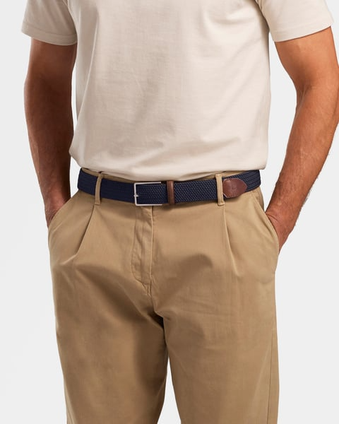 Marstrand fra Saddler er et stilig tekstilbelte av svært høy kvalitet. Beltet passer perfekt sammen med jeans og joggesko for en avslappet, men moderne look. Den elegante spennen er laget i matt sølvfarget metall, og beltet har en lett elastisk stretch for ekstra komfort. Hvis du ligger mellom to størrelser, anbefales det å velge den minste.